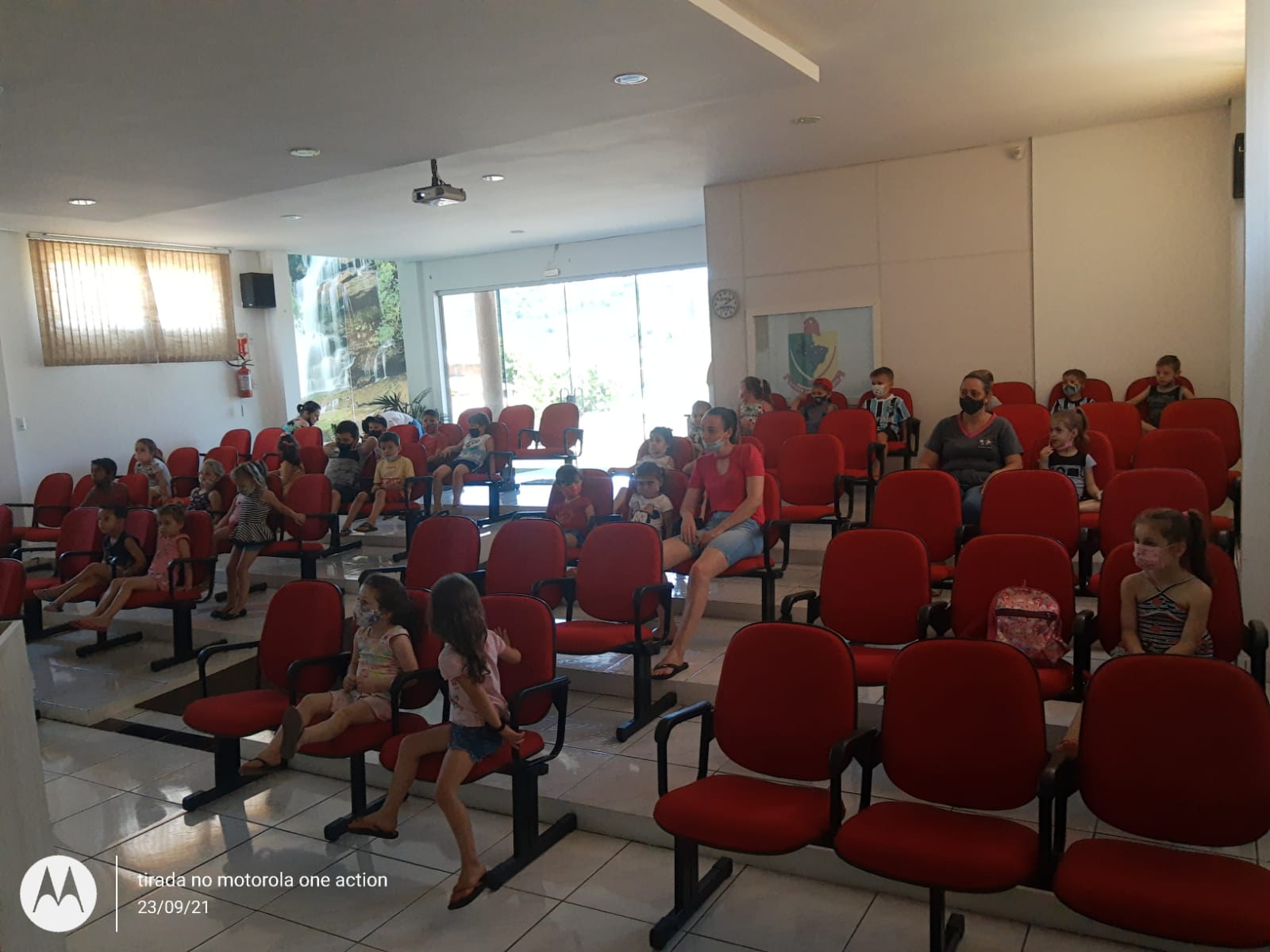 Na oportunidade os alunos conheceram o espaço e tiveram uma Sessão de Cinema transmitido no telão do legislativo, assistiram a um filme infantil. Os alunos estavam acompanhados das professoras da Turma.